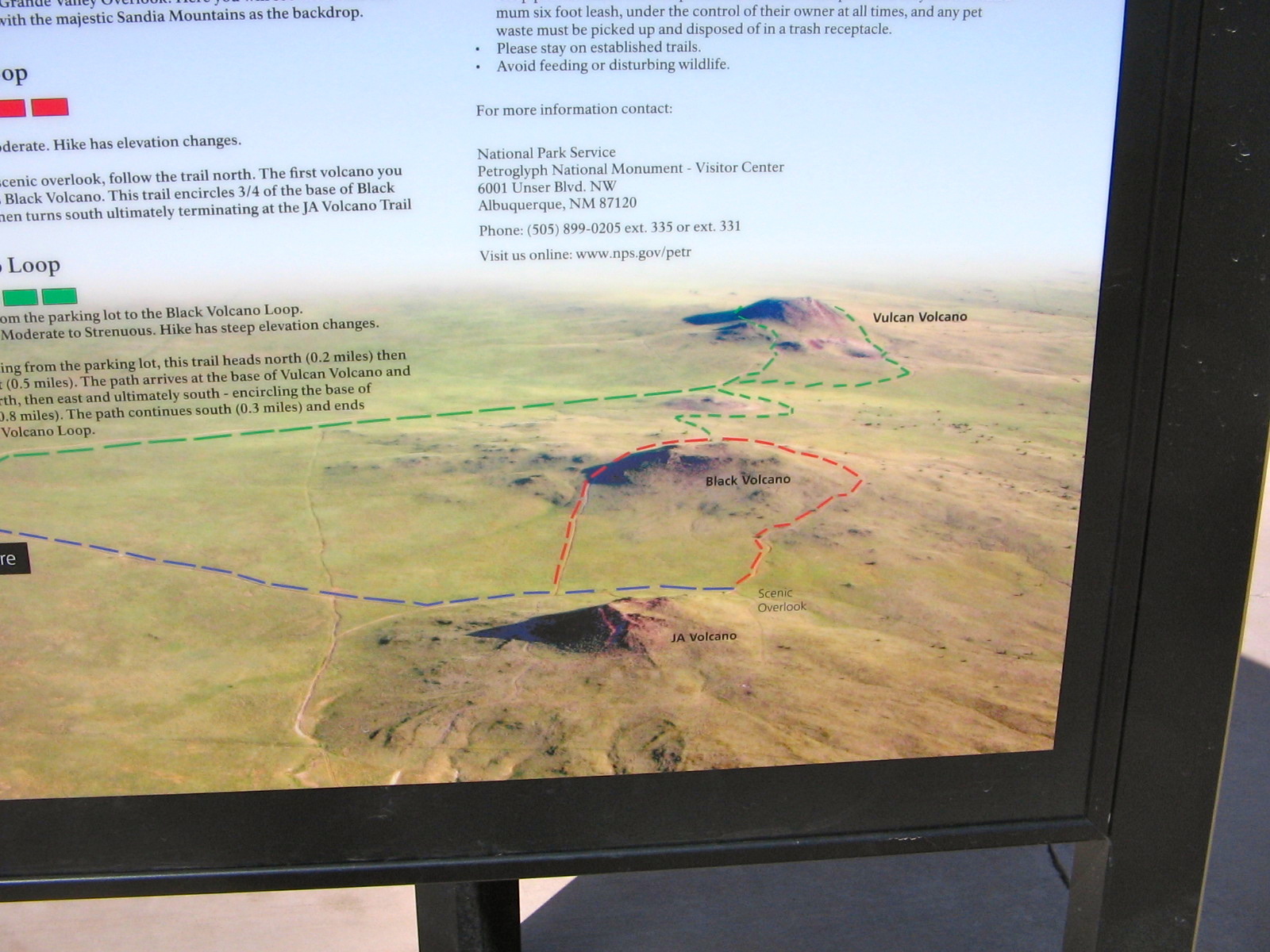 Besides bike riding, we have also taken several walks in surrounding desert areas. We wanted to visit Petroglyph National Monument, but to get the full picture of the history and geology of this area it required making two separate visits. One visit was to the western boundary of the monument to walk through the area known locally as the Albuquerque Volcanoes.
