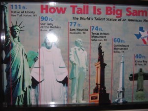 Saturday was another cold, rainy day. We spent just enough time in the morning before leaving Huntsville to check out the town’s famous statue to Sam Houston.