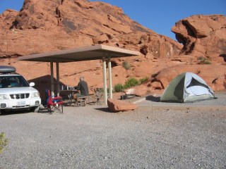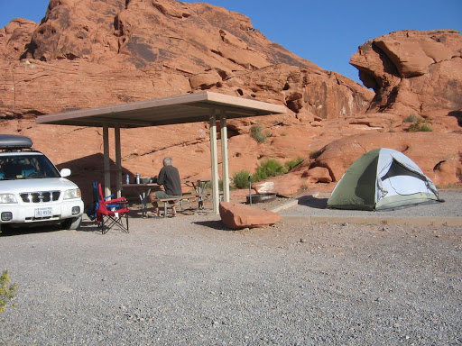Camping in the rocks at Valley of Fire reminded us of the camping at City of Rocks in New Mexico. However, the accommodations at Valley of Fire were much more luxurious. And the temperatures here at night did not cool down at all. The highs that afternoon had been over 100 degrees and we did not need our sleeping bags to keep us warm for the first time in any of the camping we’ve done this year.