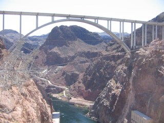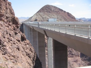 On Sunday we drove from Kingman, Arizona, across the Hoover Dam into Nevada. Many years ago when I had crossed the Hoover Dam the road was on top of the dam. There is now a recently constructed bridge, a real engineering marvel, that was built to route the highway off the dam.