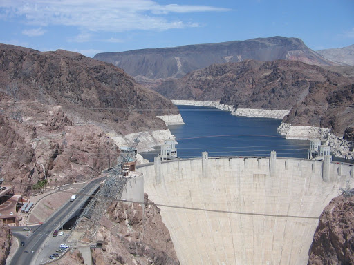 Behind Hoover Dam is the large Lake Mead Recreation Area.