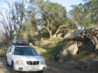 For those of you who remember our camping experience in San Angelo, Texas, when we lost a tent pole due to the wind that night, I would have to say that the winds at Gaviota were much worse than that. It was too windy to light our camp stove so we drove into nearby Buelton and ate dinner at a restaurant. We came back to the campground and sat in our car as long as possible, putting off the task of setting up the tent. But as daylight faded we couldn’t put it off any longer and got out to wrestle with the hurricane force gusts to get the tent up and anchored before it was snatched away. Lee blocked some of the wind’s force by turning the picnic table on its side and setting it next to the tent!