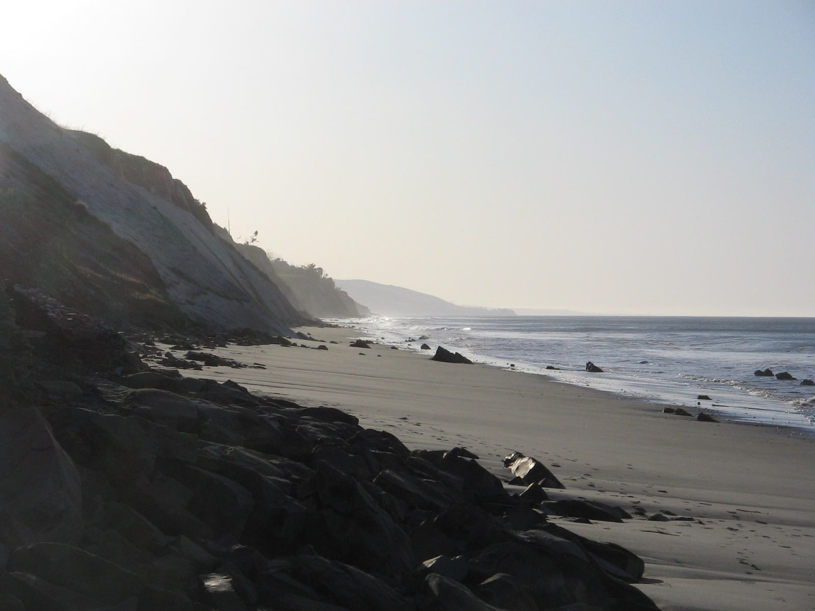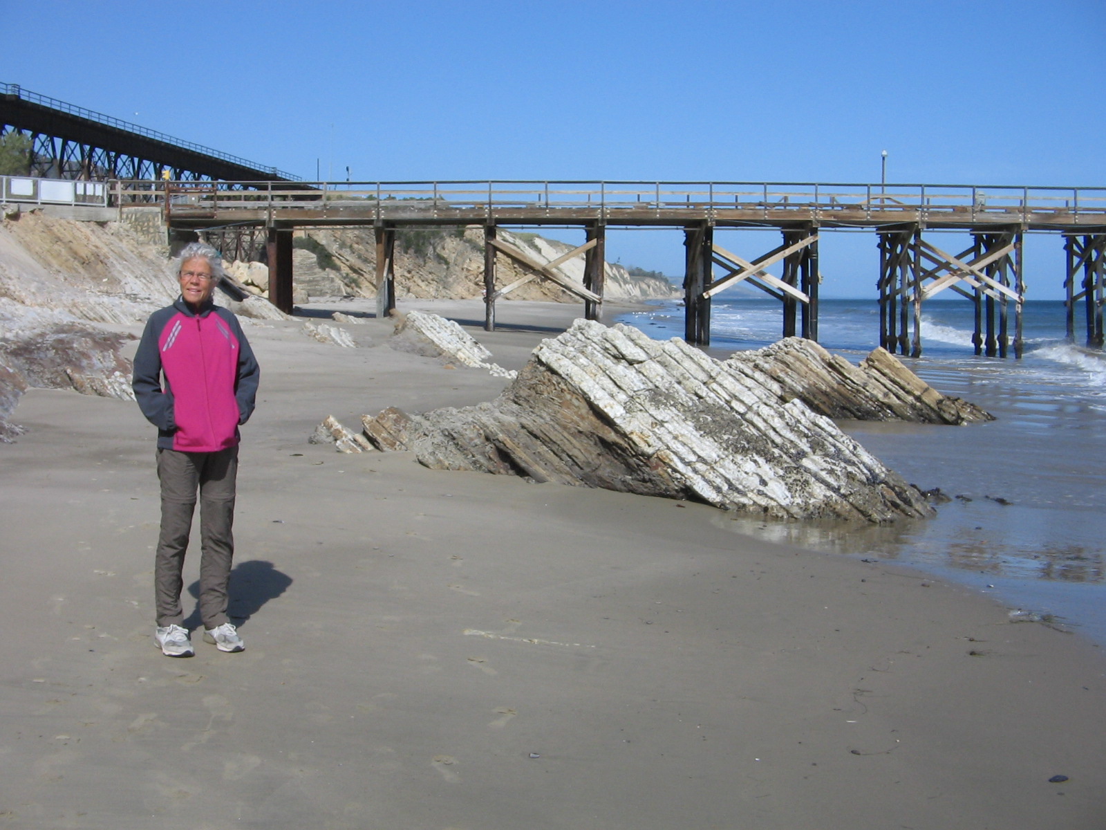 The beach at Gaviota State Park, fishing pier in the background. We saw a whale swimming near the shore around the end of the pier.