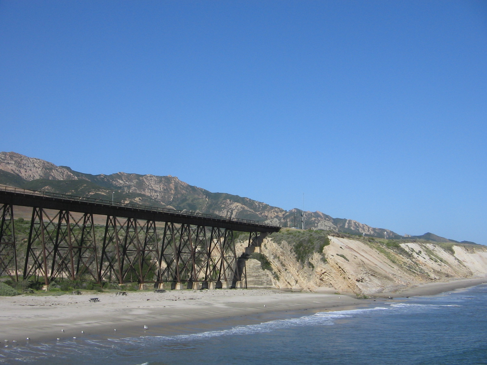 Railroad trestle at Gaviota State Park. The campground is to the left of the railroad trestle.