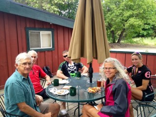 Enjoying a coffee break in Jacksonville, Oregon, after a Saturday morning bike ride with family and friends