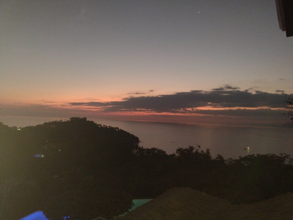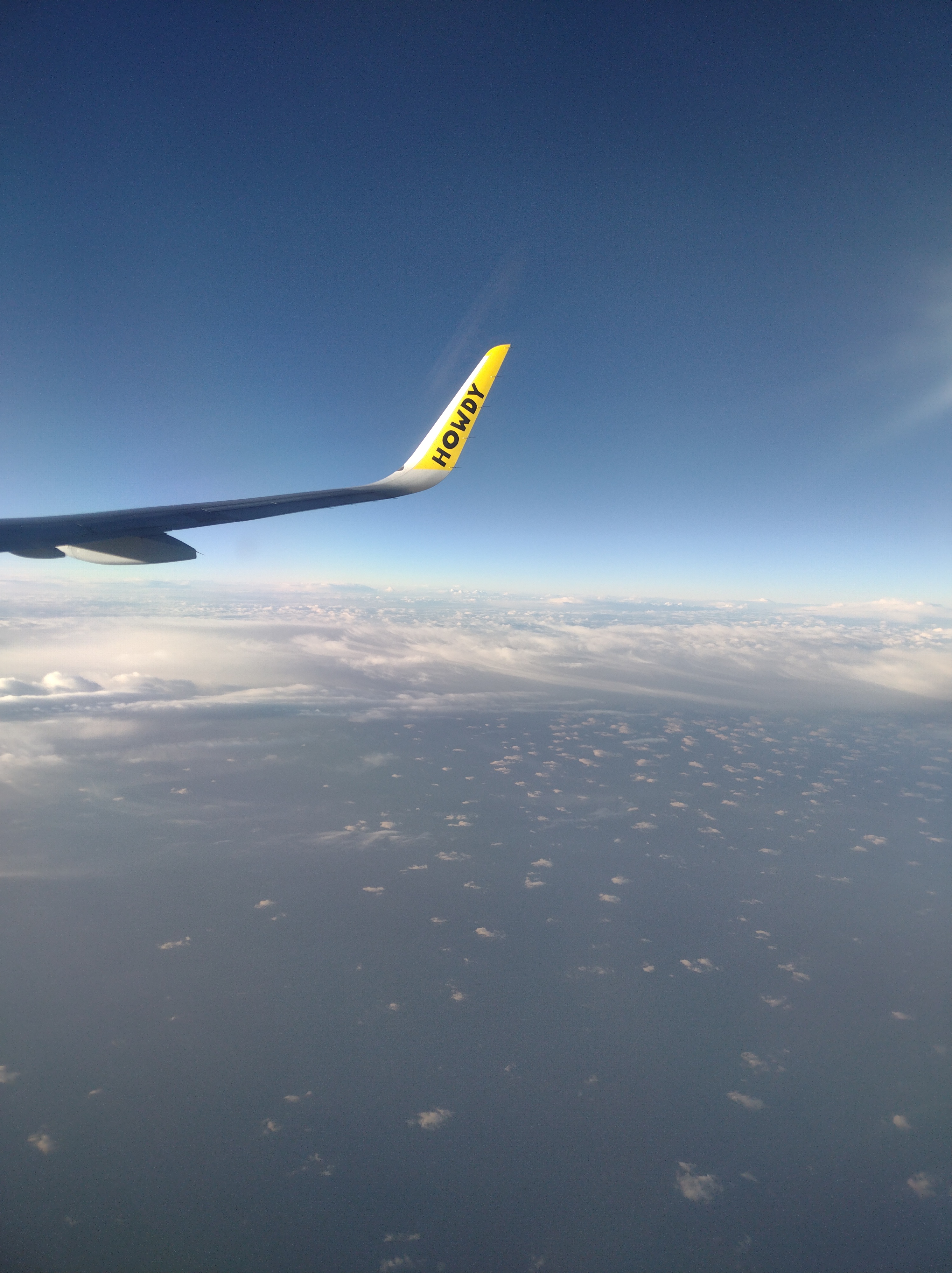 This was our first experience with Spirit airlines, leaving from Dallas Fort Worth Airport, which we have experienced as a huge, overly busy place. We wisely made the decision to allow ourselves plenty of time. All hurdles overcome four hours after getting up I was finally seated on the plane waiting for daylight to arrive. When light began to dawn out the window I was able to see a cheerful greeting from Spirit on the top of the airplane wing as we were carried over the north top of the Gulf Coast on our way to Orlando, one step closer to this afternoon’s arrival in Costa Rica.
