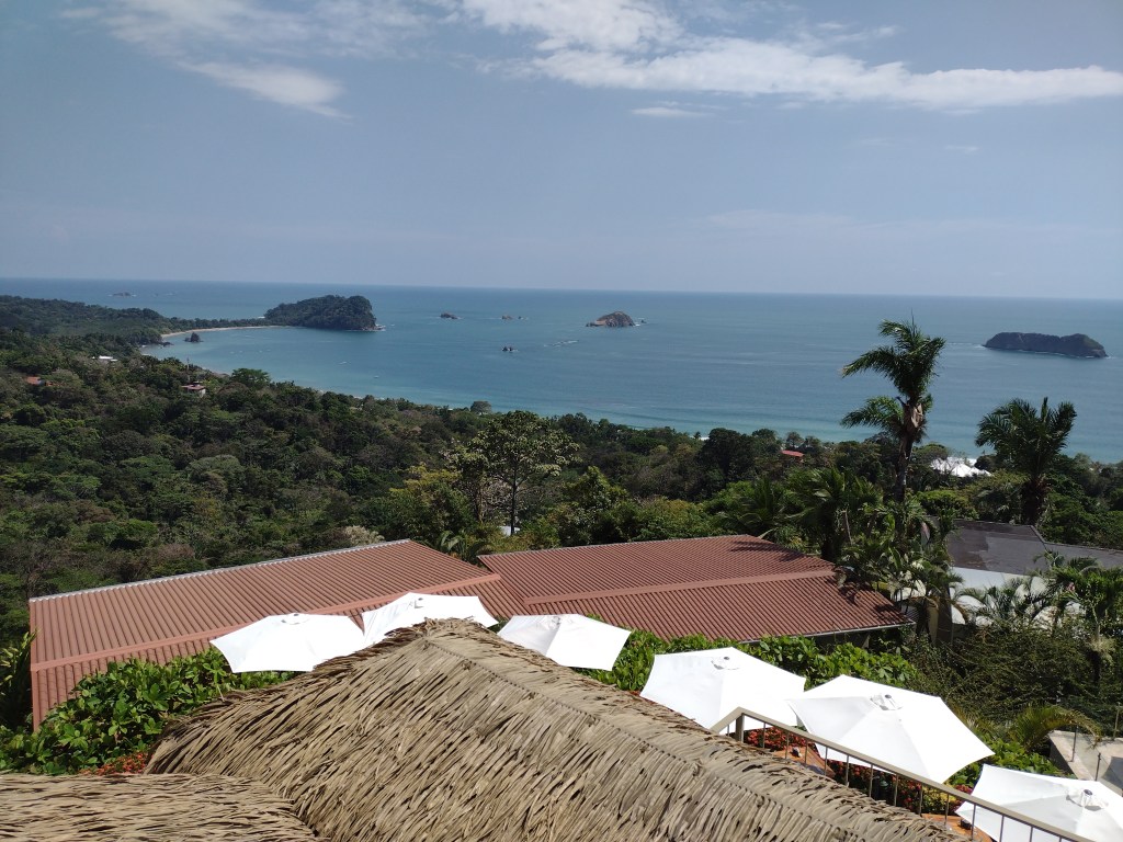 On this part of our tour we began to appreciate the value of having local drivers to take us to our destinations. The traffic on the 4-1/2 trip from Monteverde to Manuel Antonio was stop and go for a good part of the way. As we approached the coast the heat began to build up and I wished that I had put on lighter clothes. It was a relief to get to the hotel with its breezy patio and pool area where we could sit in the shade, feeling the ocean breezes and enjoying the complimentary fruit smoothie.