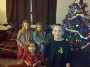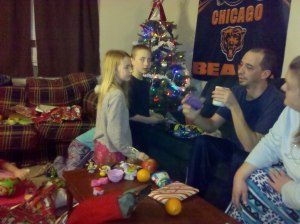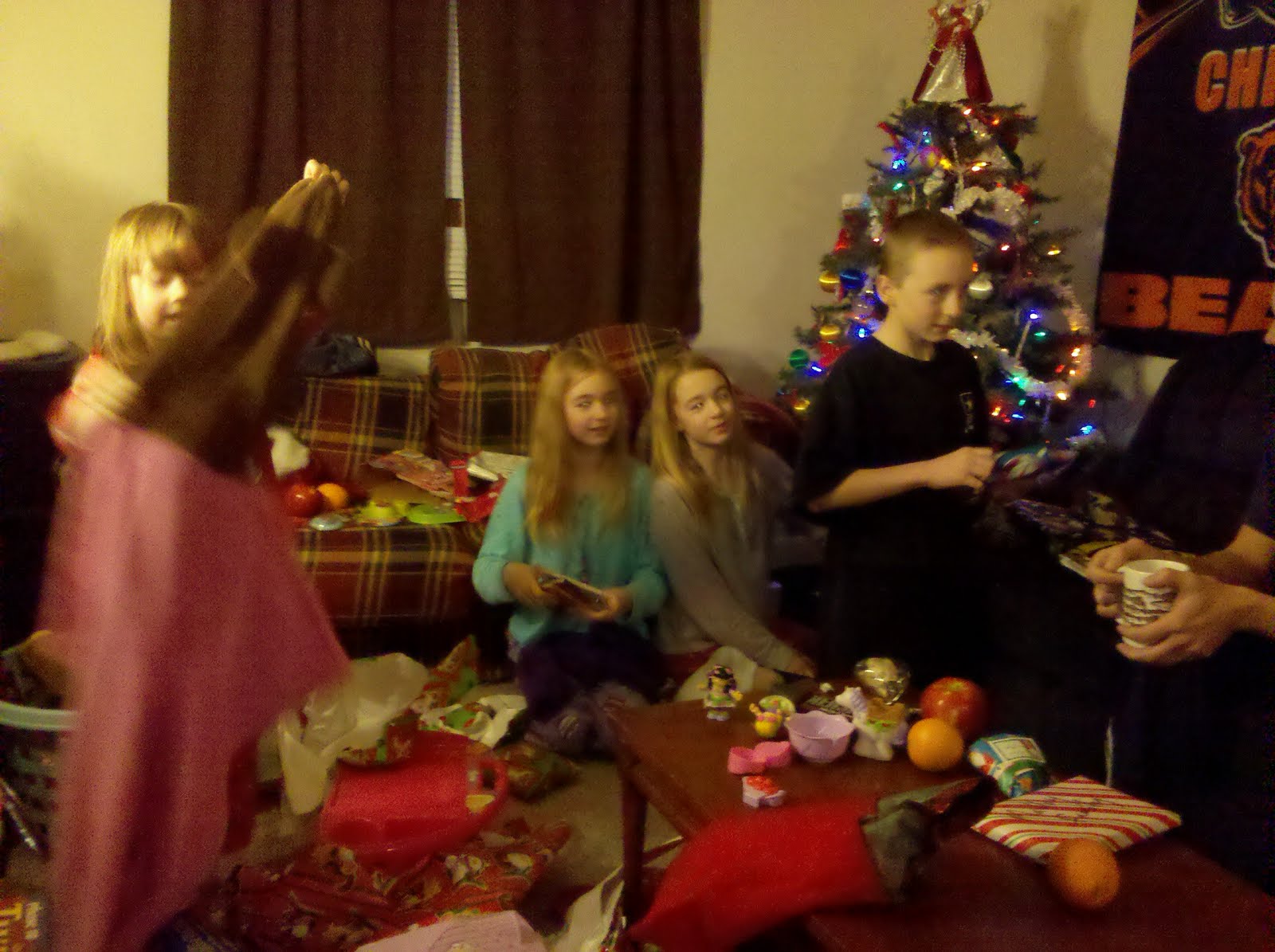 I would have expected a very early Christmas morning with kids excited to see what Santa had brought them. But they didn’t get up until 7:00am. We enjoyed the exchange of gifts, which Mike tried to manage with some order. Of course, it didn’t take very long before wrapping paper was flying everywhere and joyful voices were shouting in excitement.