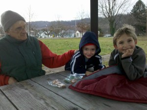Yesterday, we enjoyed spending time in Morgantown with our 2 grandsons. The weather has been unseasonably warm, and, although there were a few sprinkles of rain, we were able to walk with the kids to a nearby park. Grandpa played “pirates” chasing the boys around the playground while Grandma dozed on a park bench. (Grandma sure does like to doze, doesn’t she? And wait till we get to Florida where I will be able to doze on a bench somewhere in the sun).