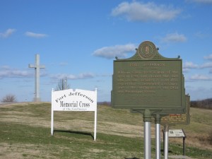 4 states in one day! But we really didn’t drive many miles. I had never looked closely at the borders of these 4 states or noticed how they meet up around the confluence of the Mississippi and Ohio Rivers. It was a short 12-mile drive this morning from our motel in Charleston, Missouri, to the bridge across the Mississippi into Cairo, Illinois. Cairo is at the point of land formed by the “V” where the Ohio and Mississippi Rivers come together. So it was a brief 10 minutes in Illinois before we found ourselves crossing another bridge, this time over the Ohio River into Kentucky. In Wickliffe, Kentucky, a 95-foot cross sits on top of a bluff that overlooks the 2 rivers and has a view into the 3 states.
