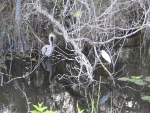 When we stopped at the lake we saw only one small alligator, but there were at least a half dozen, huge snapping turtles, floating near the shoreline competing with the birds and alligator for whatever food could be found.