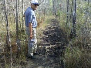 Today’s hike, on the Yearling Trail, was the most interesting from a historical perspective. It traverses an area called Pat’s Island, which is not an island in the usual sense. Settlers called these areas of wilderness islands because they were oases of fertile soil and moisture surrounded by a massive “sea” of pine scrub. Pat’s Island was abandoned by its residents in 1935, after less than 100 years of human occupation.