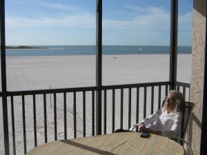 Sunday we left Cape Coral and drove to Fort Myers Beach. Our hosts here are Lee’s brother and sister-in-law, Scott and Diane Regan. They have rented a beautiful condo overlooking the beach and are graciously letting us stay here with them. So far, Barbara’s favorite activity, as usual, is sitting in the sun, while Lee has been more interested in investigating the wildlife.