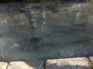 I’d never seen a spring this big before. The brochure says “average daily flow of around a hundred million gallons of water, enough to fill about 26 bathtubs every second.” There are also several trout rearing ponds managed by the Missouri Department of Conservation. The ponds were filled with rainbow and brown trout, some of them really huge.