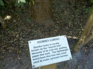 A tree we have seen many other times is the Gumbo Limbo. Besides the interesting name, it has an amusing nickname used by the locals. Fortunately, Lee and I are not part of the red, peeling skin crowd, but are, instead, getting nice Florida tans.