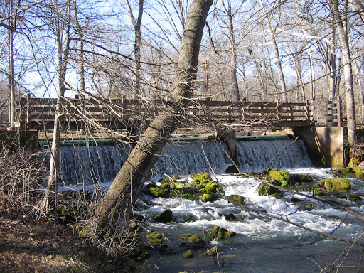 Maramec Springs Park has a waterfall at one end of the pond where the water comes from the spring.