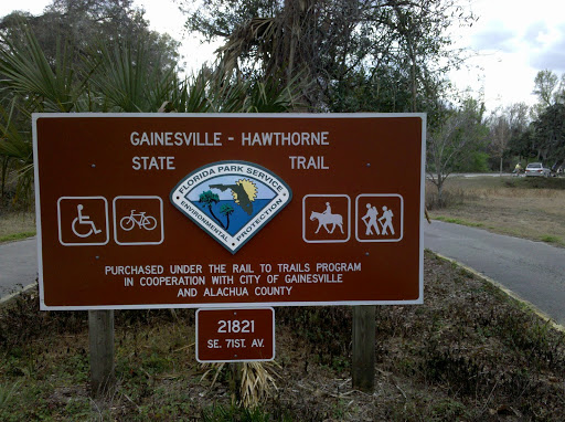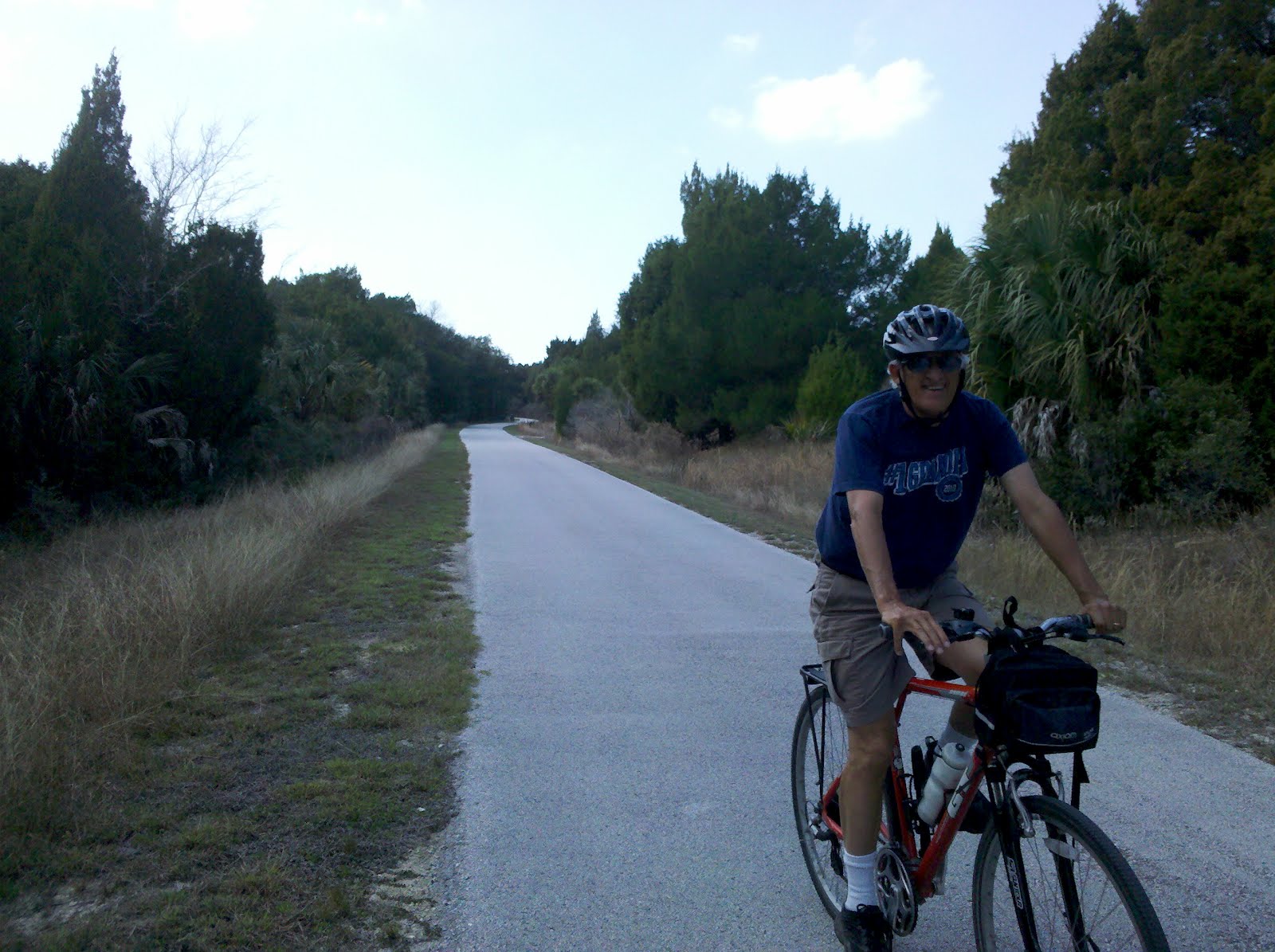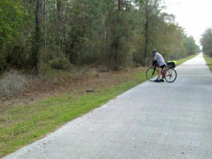 The Gainesville-Hawthorne State Trail that we used surprised us with a fun 2-mile stretch that had some hills and curves. Up until this point, everything in Florida has been flat, but there are a few hilly areas around Gainesville. (“Hilly”, of course, being a relative term for those of you who ride in Oregon and Iowa).