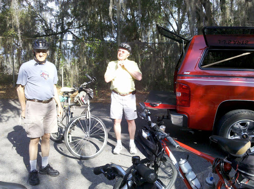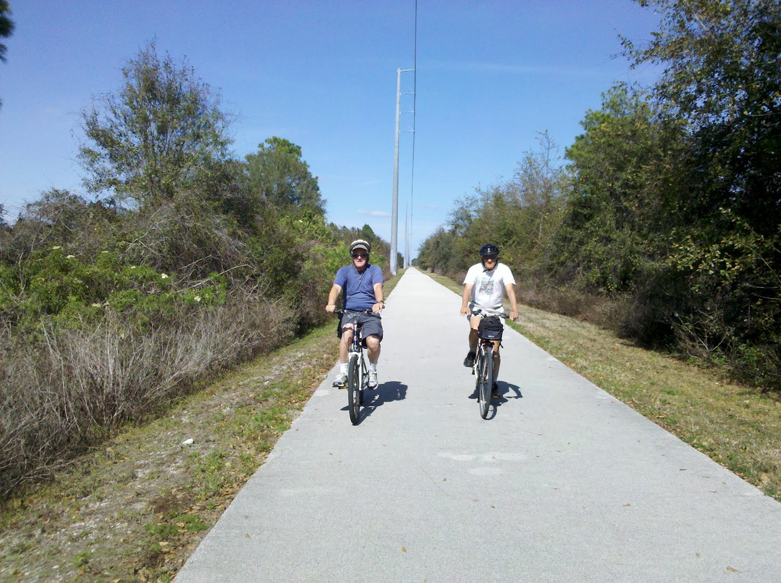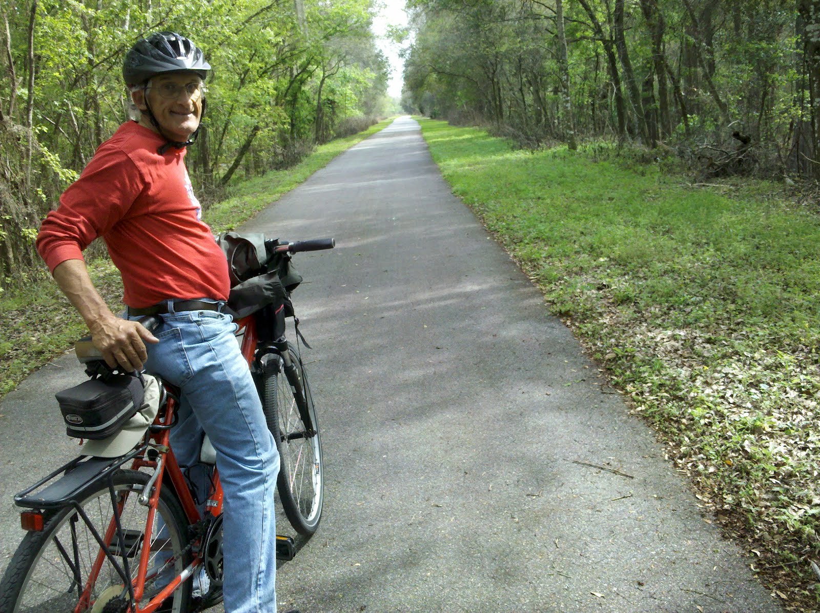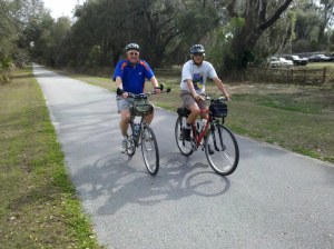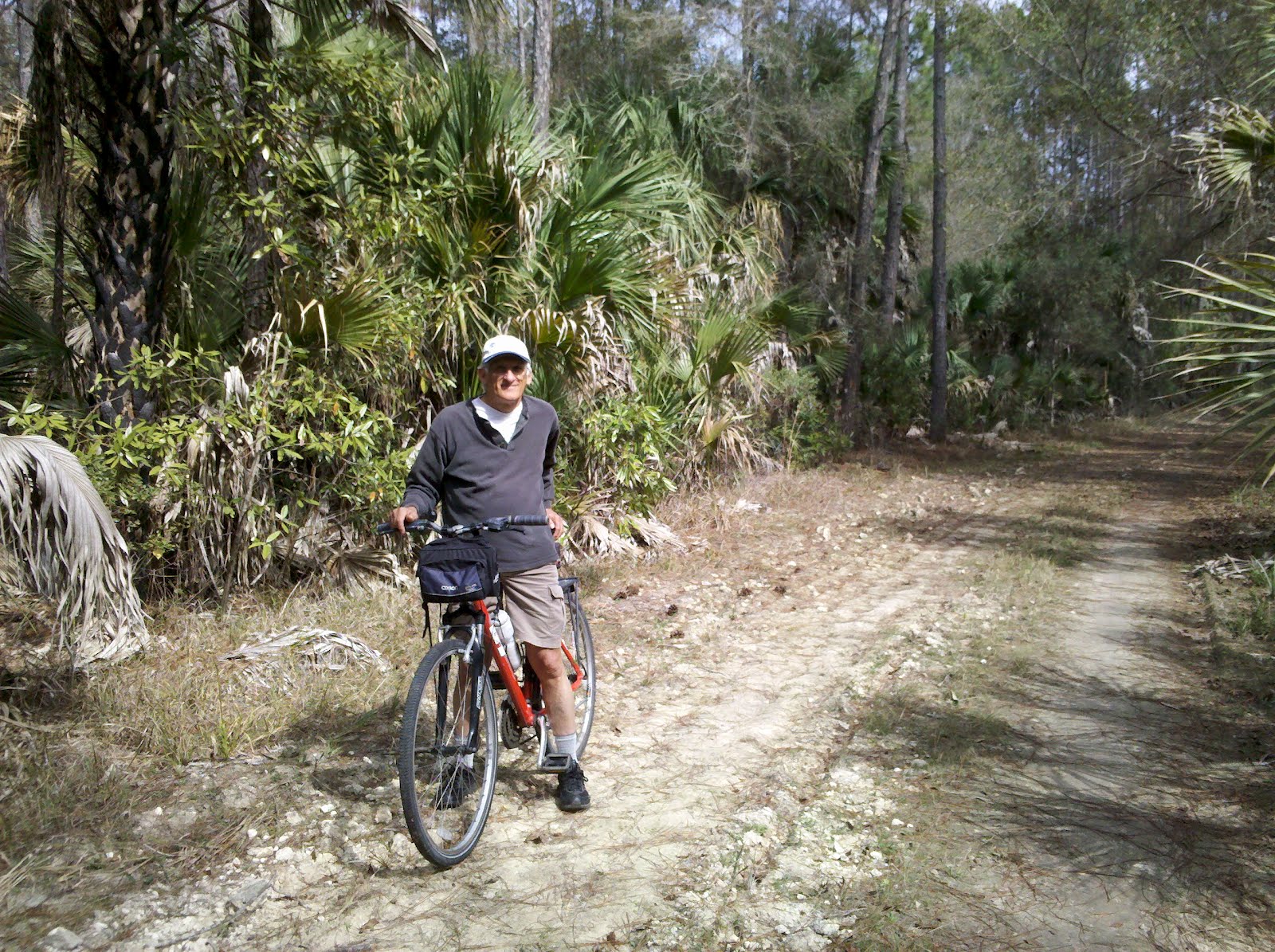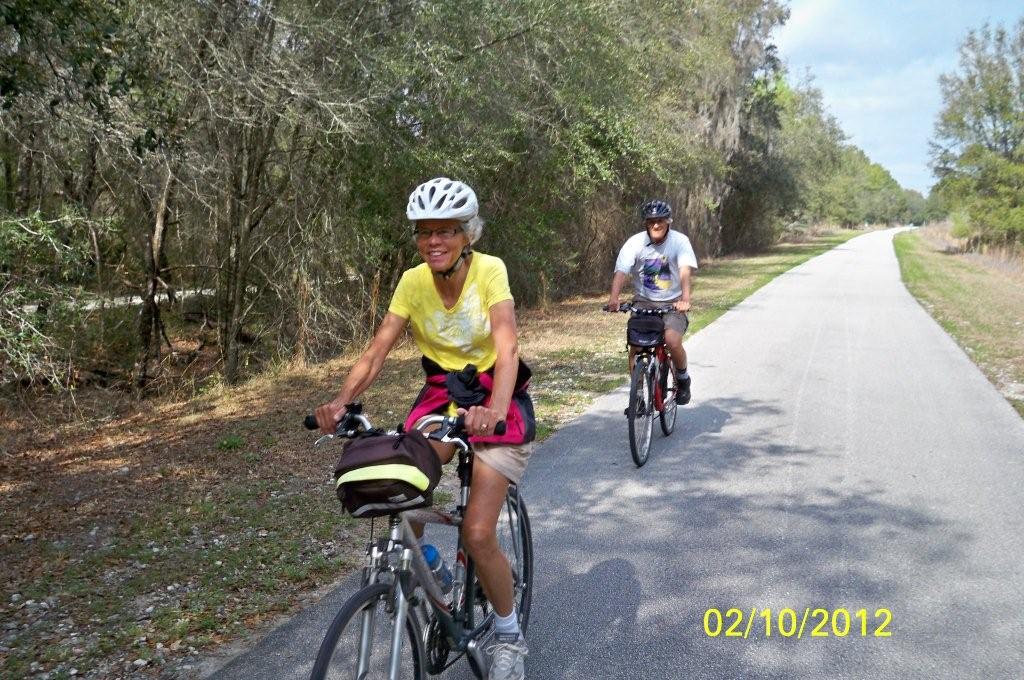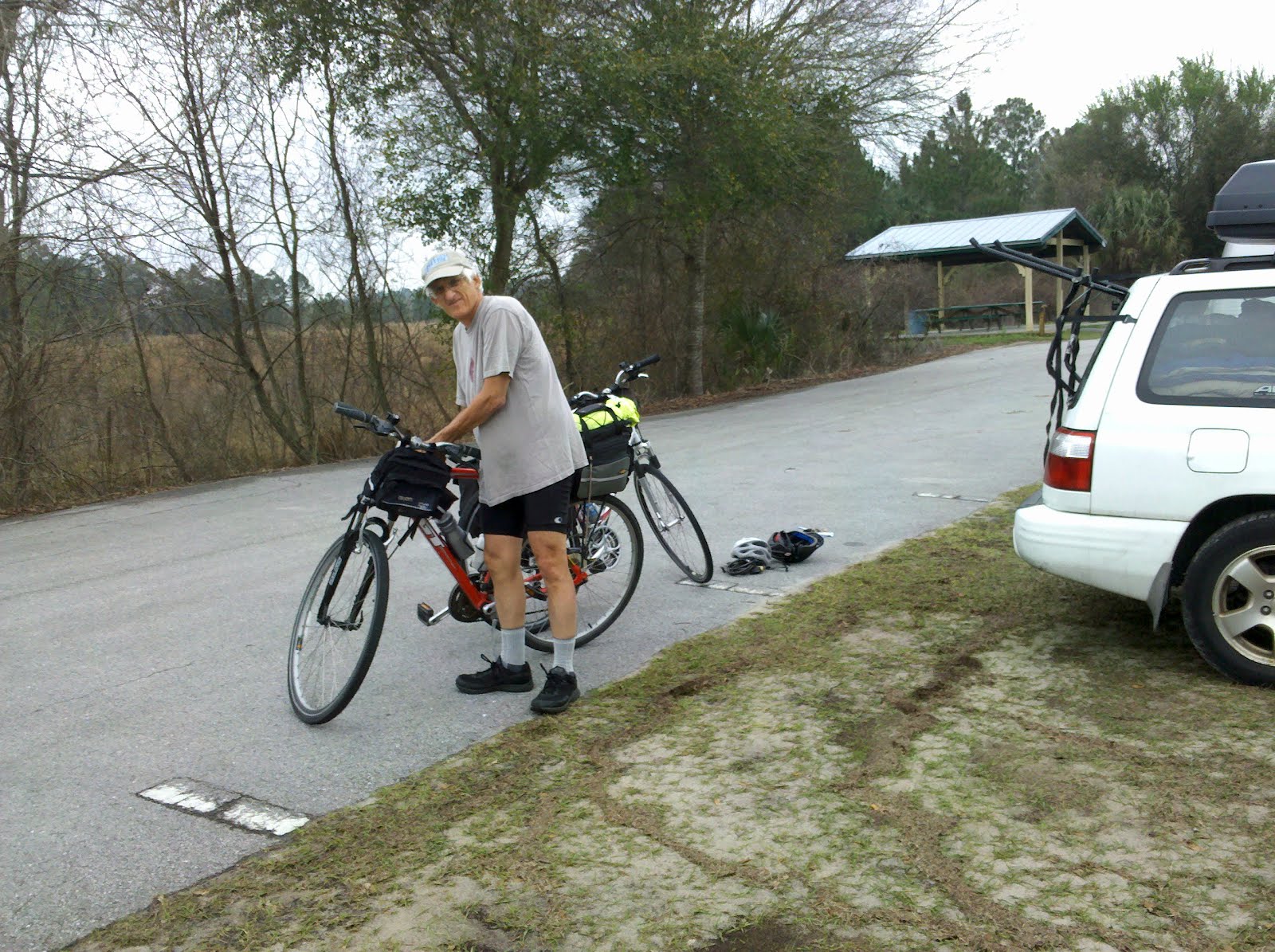 In contrast to the 110-mile Greenway trail, which is mostly unpaved the Withlacoochee State Trail, at 46 miles, is the longest paved trail in Florida. The Citrus Springs trailhead is about an hour’s drive from Ocala and the day that we did some biking there we were joined by our friend, Jerry.