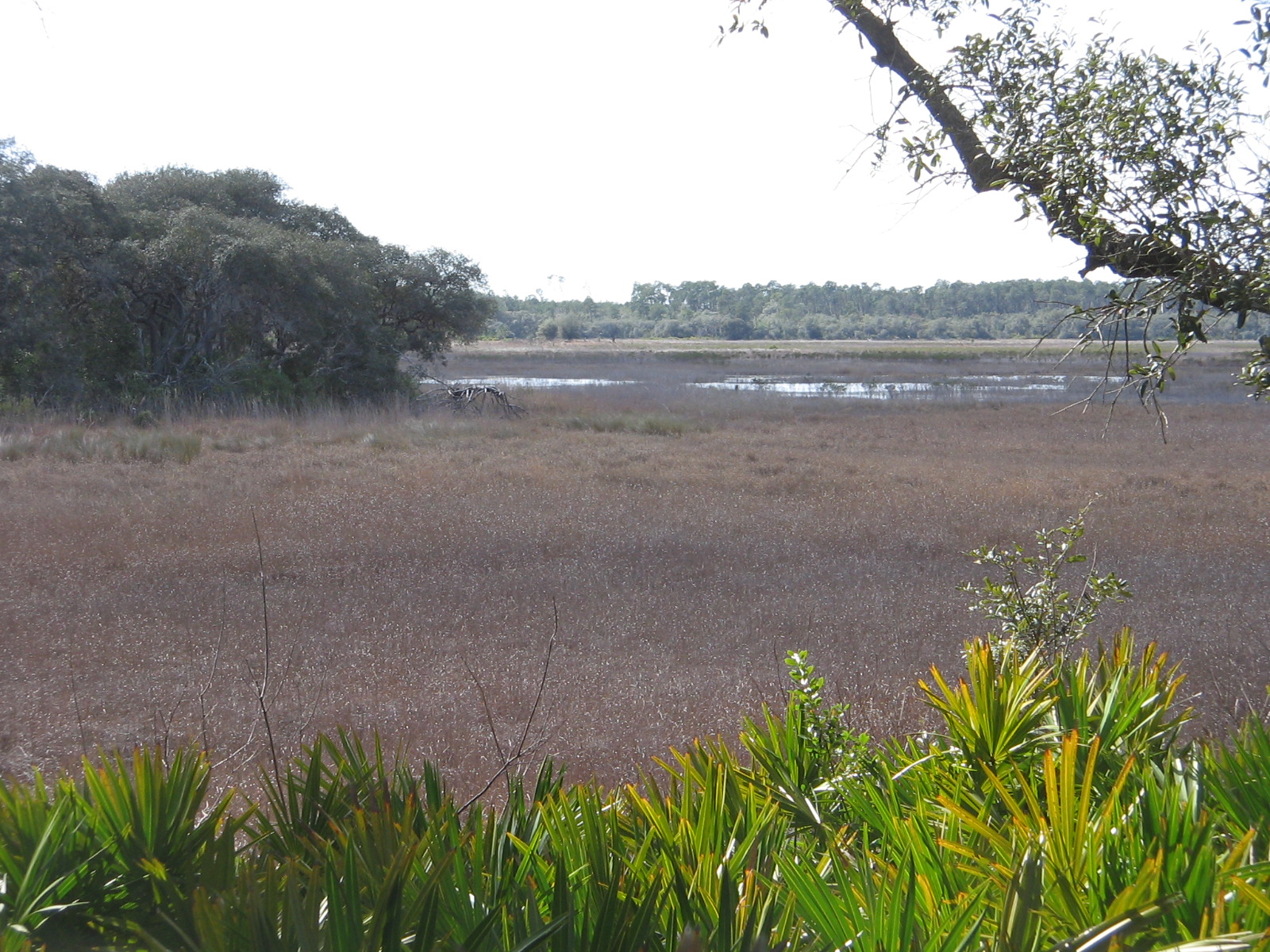 Viewing platform into one of the salt marshes along the trail as it approaches the Gulf.