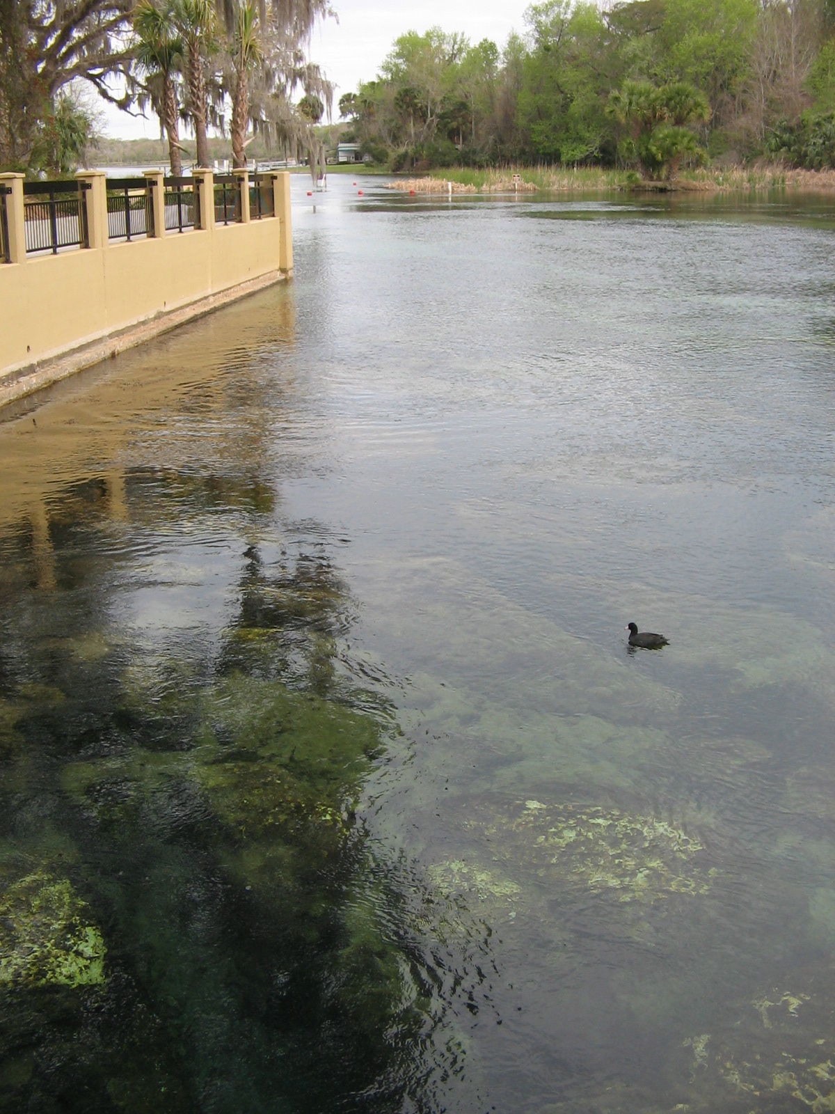 February is still too cold for me to think about swimming but, supposedly the water in the spring stays at a constant 72 degrees. It bubbles up from 7 large and 2 small vents in the limestone base. Most of the pool is only 2 feet deep with clear blue water where you can watch the many fish swimming around. The water is deeper over the vents; some of the vents are reported to be up to 20 feet deep.
