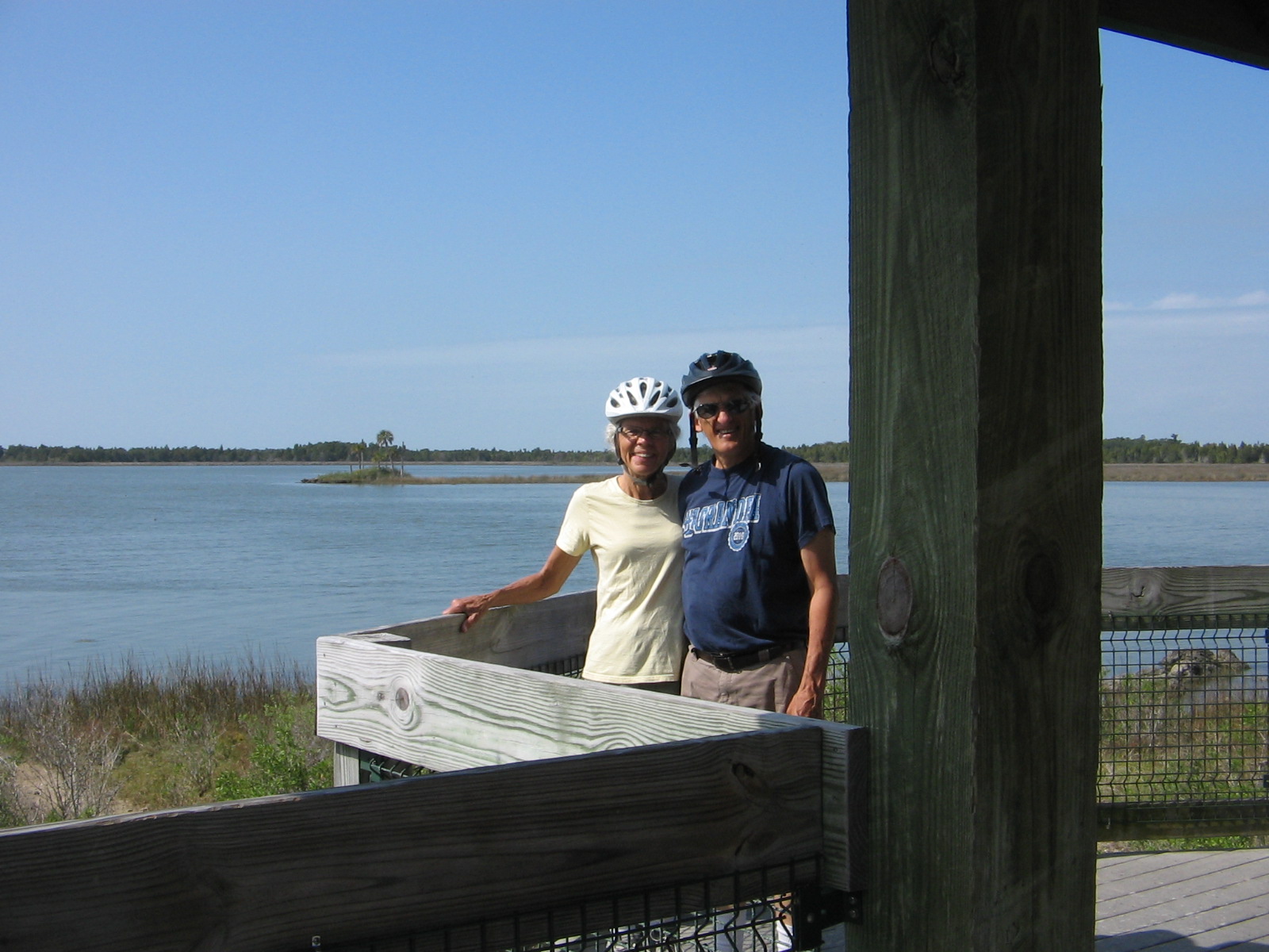 The first stop after leaving FMB was at the J. N. “Ding” Darling National Wildlife Refuge on nearby Sanibel Island. Lee and I had spent time there on a previous visit to Florida, but we had a special reason yesterday for going there. Our friends, the Marshall’s, from northern Virginia were vacationing there. Over the years we have shared many hikes and bike rides with the Marshall’s. How nice to see some familiar faces.