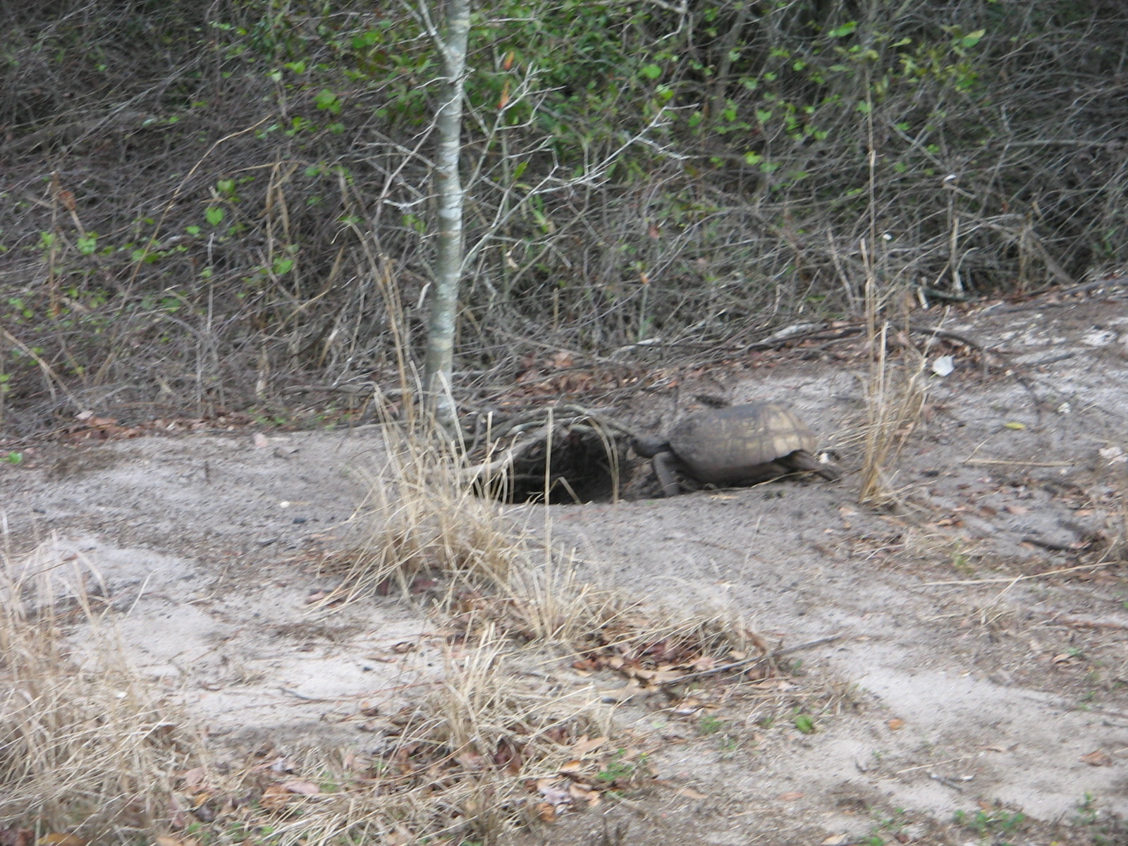 Finally, when we decided it was time to quit stopping every time we saw a tortoise, we began to see one or two that had ventured a bit further away from its hole. That allowed us to catch a photo before they disappeared.