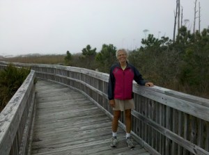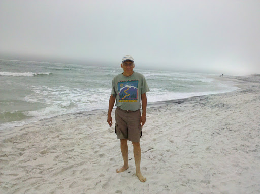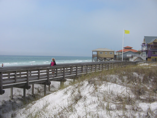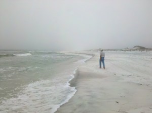 We did not find the sunny weather that we hoped for when we drove to Florida’s Emerald Coast, but after driving for 2 days through rain we were happy that at least it hasn’t rained while we’ve been here. And even with the fog and overcast skies we can see why this area along the Gulf of Mexico is considered to have some of the most beautiful beaches in the world. The sand is made up of pure Appalachian quartz, which reflects sunlight back up through the surf and gives the waters a remarkable emerald-green color. Walking barefoot on the soft, white, sugary sand soothes the toes and when you want to put your shoes back on it seems the sand falls right off leaving your feet feeling clean instead of gritty.