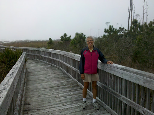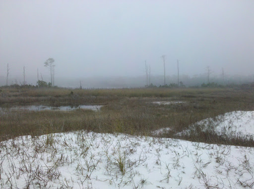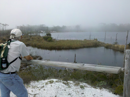The hike not only had good views of the lakes, but there was also access to a beach on the Gulf, boardwalks through marshes and over sand dunes, and portions of trail through pine forests and oak hammocks. Because the day was foggy there was a special, eerie quality looking over the lakes and to the trees and dunes in the distance.